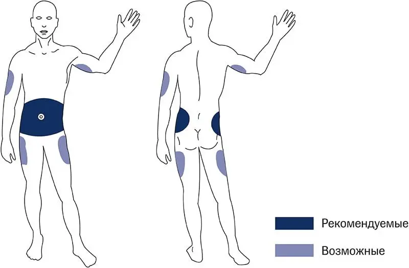 Не устанавливайте систему на поврежденную, раздраженную кожу, а также на участки с шишками, уплотнениями. Если для установки вы выбрали ту же часть тела, на которой стояла прошлая канюля - отступите несколько сантиметров от предыдущего места инфузии.