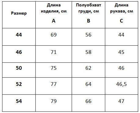 С - длина рукава (от горловины)