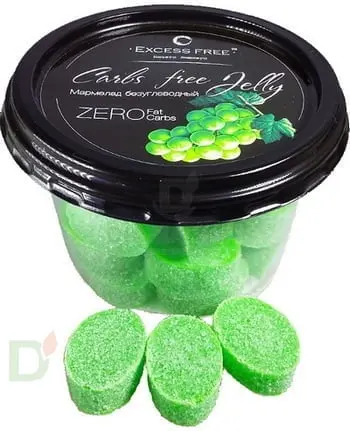 <p> Прекрасный десерт для тех, кто не научился правильно компенсировать сладости. </p> <p> Побалуйте сладкоежек сочным и свежим виноградным мармеладом БЕЗ УГЛЕВОДОВ! Никаких подколок инсулина и скачков сахара. И... тсссссс! Его можно даже худеющим, и даже на ночь ;-) </p> <p> Вкус лета в каждом кусочке. </p> <p>   </p> <p> <strong>В составе только натуральные подсластители! </strong> </p> <p> Для производства всей продукции марки "Ничего лишнего" не используется синтетическое сырье! </p> <p>   </p> <p> <strong>Состав:</strong> </p> <p> вода очищенная, эритритол, желатин, пищевые волокна, лимонная кислота, сорбат калия, пищевой ароматизатор, пищевой краситель. </p> <p>   </p> <p> Вес нетто: 150г </p> <p>   </p> <p> Срок хранения: 45 суток при температуре от +8 до +18.  </p> <p>   </p> <p> <strong>Пищевая и энергетическая ценность на 100г:</strong> </p> <p> 32,4 ккал / 135,65 кДж </p> <p> 0 г жиры </p> <p> 0 г углеводы </p> <p> 8,1 г белки </p> <p>   </p> <h1>Кому стоит купить мармелад бренда Excess Free?</h1> <p> •тем, у кого сахарный диабет 1 или 2 типа, ведь можно обойтись без укола инсулина </p> <p> •тем, кто следит за своим весом - очень мало калорий </p> <p> •спортсменам, в рационе которых не бывает сладкого </p>