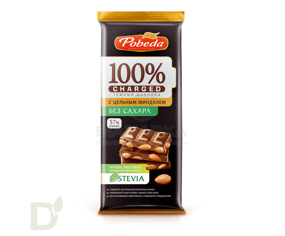 Шоколад  Победа Чаржед Темный с миндалем без сахара, 90г. Шоколад  Победа Чаржед Темный с миндалем без сахара, 90г. Шоколад  Победа Чаржед Темный с миндалем без сахара, 90г.