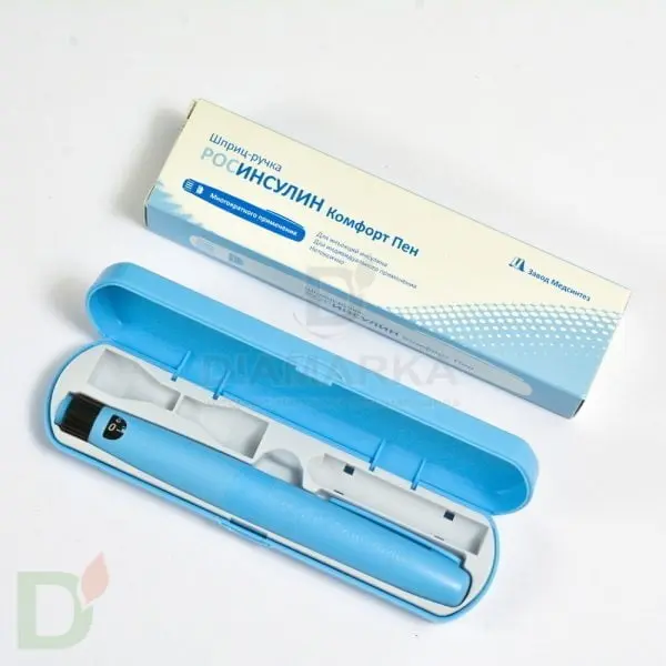 <h2>Многоразовая шприц-ручка РОСИНСУЛИН Комфорт Пен</h2> <h2>Для картриджей Росинсулин</h2> <ul> <li>Лёгкий пластиковый корпус;</li> <li>Шаг - 1 ед., максимальная доза - 60 единиц;</li> <li>Мягкое колёсико набора дозы. Каждая набранная единица при этом хорошо ощущается;</li> <li>Можно корректировать набранную дозу;</li> <li>Подходит для инсулина Росинсулин;</li> <li>В наборе - компактный пластиковый чехол с углублениями для двух игл и картриджа.</li> </ul> <p> Срок годности не ограничен.<br> Хранить при температуре +5<sup>о</sup> / + 40<sup>о</sup> </p>