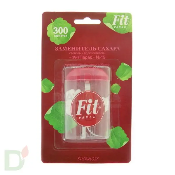 ФитПарад № 19 заменитель сахара на основе сукралозы, 300 таблеток - инновационный сахарозаменитель. Обладает великолепным вкусом и улучшенными потребительскими свойствами благодаря сбалансированному составу тщательно подобранных компонентов.  Рекомендуем использовать для замены сахара при диабете и при диетах для снижения веса.